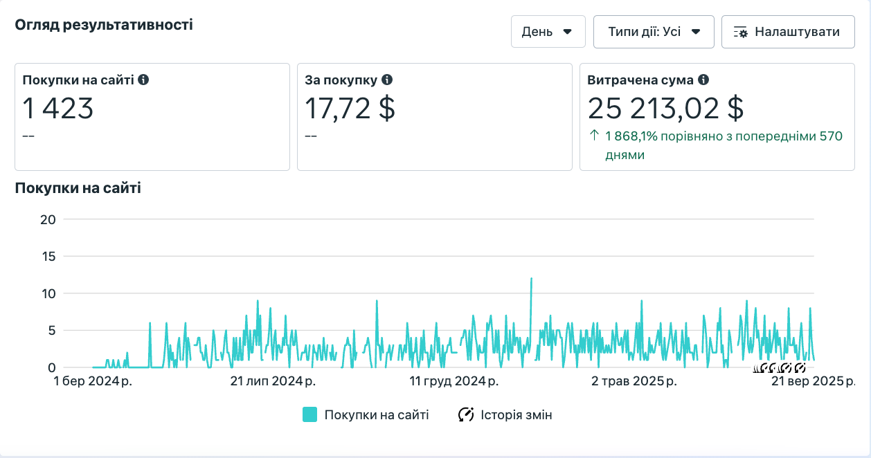 Наразі сайт перехопив ініціативу в ефективністі, якщо раніше дірект давав основну к-сть продажів, то наразі сайт, а інстаграм скоріше слугує для впізнаваності та збільшення к-сть потенційної холодної аудиторії, яку згодом ми викорситовуємо для конверсійних кампаніях на сайті