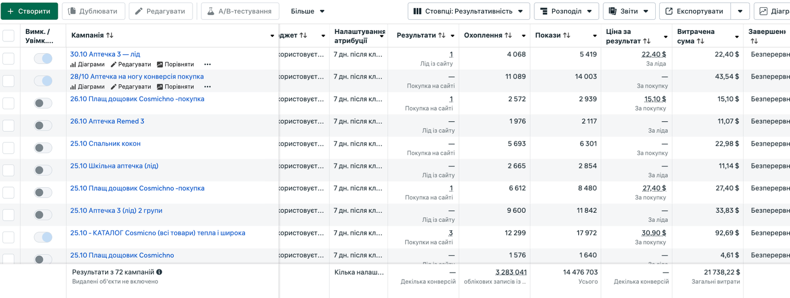 Ознайомились з ринком конкурентів та внесли зміни до товарів на які будемо рекламуватись та зробили сегментування на різні товари, щоб попадати в ЦА