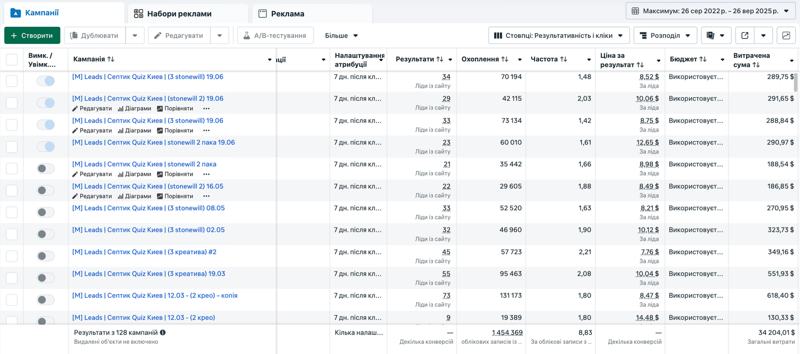 Почали прауювати з двох воронок на сайт та Квіз, сайт показував дорогу вартість за заявку тому ми його вимкнули, залишили тільки Квіз