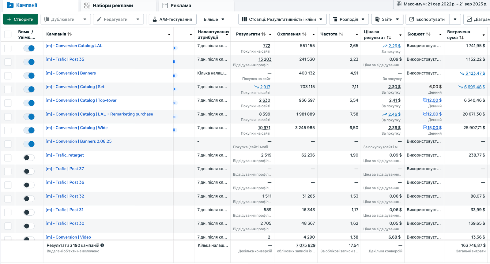 Дуже хороший результат приносили точкові акції в дні, коли була можлива безкоштовна доставка в поштомати також з останніх інструментів, які почали використовувати це - запуск конверсійних кампаній на пости з інсти з хорошим органічним залученням. Це також давало непоганий результат.