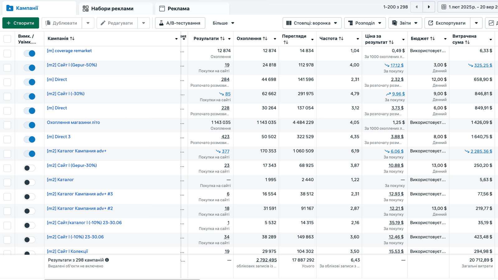 Створення нової структури рекламної кампанії та розділення бюджету між 2 воронками, сайту та діректом